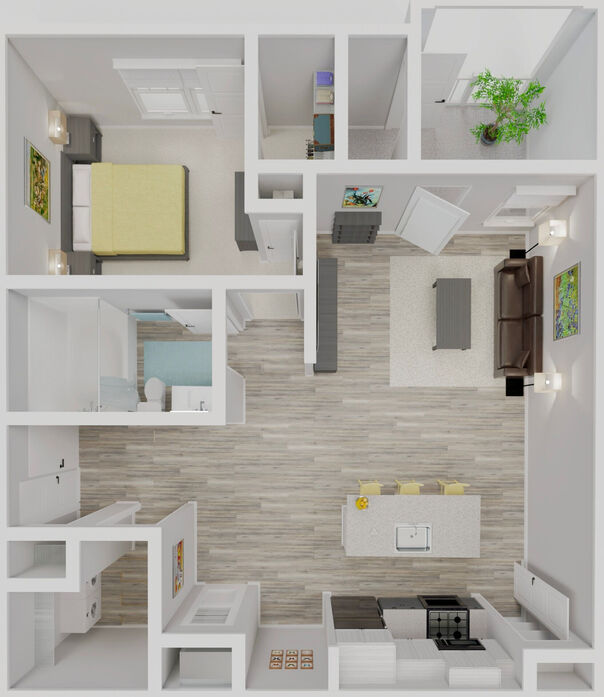 One-bedroom with a spacious den offers the perfect blend of functionality and comfort. Ideal for a home office, guest space, or creative studio, the den adds flexibility to your living arrangement. Enjoy a modern kitchen with high-end finishes, a dedicated dining area, and a bright living room that opens to a private patio or balcony. Additional features include a large walk-in closet, in-unit washer and dryer, and thoughtfully designed storage throughout.
